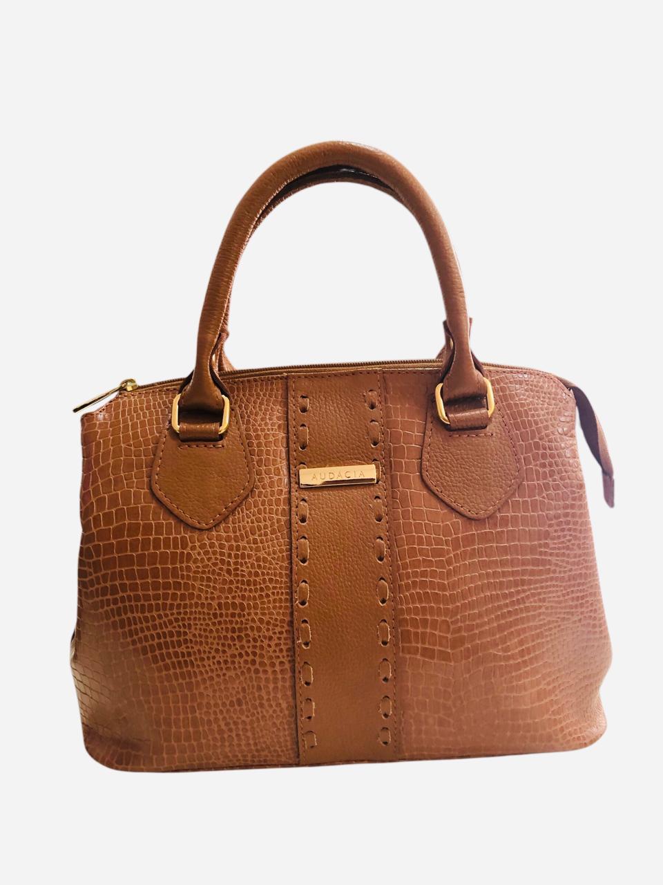 Bolsa Caramelo com faixa trabalhada 100% Couro Croco Livia